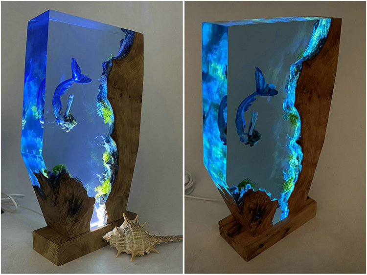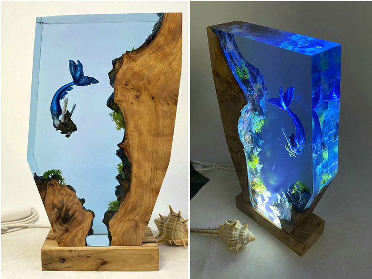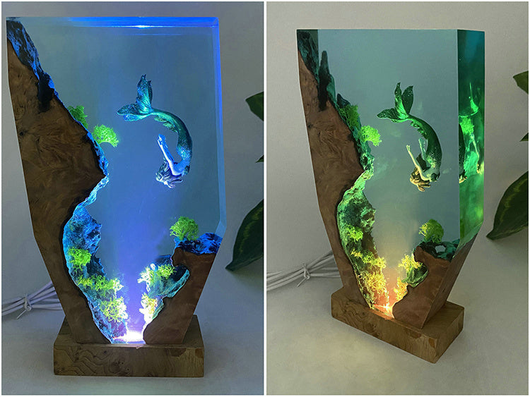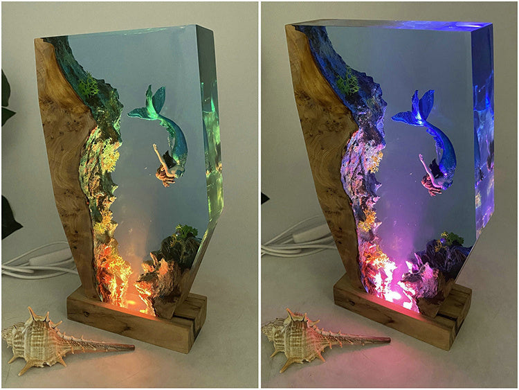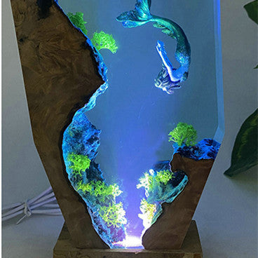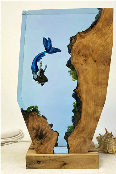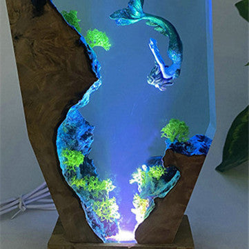 DIY Mermaid Ocean Small Night Lamp Creative Handmade Wooden Resin Decorations